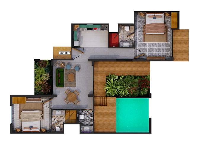 Individual Swimming Pools in Each Unit where you can unwind in peace.